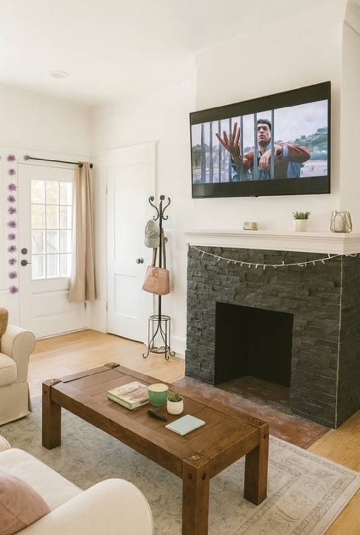 Discover your dream home at 1128 Peach St! This stunning property features four spacious bedrooms, each ranging from 120 to 160 sq ft, complete with walk-in closets. You'll find two generously sized full bathrooms, an inviting open floor plan, and a large living area that comes with a mounted 70-inch flat-screen TV, perfect for cozy evenings around the impressive 60-inch wood-burning fireplace.